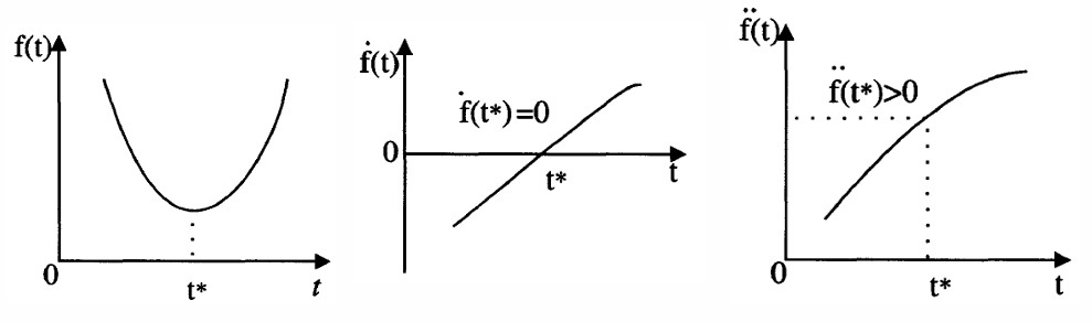 Definition: A function f(t) is said to have a relative optimum at the point t* if there exists a positive parameter ε, such that for all points t in a domain D that satisfy |t − t*| < ε, the increment of f(t) has the same sign (positive or negative).